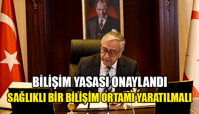 Hukukçuların görüşlerini de dikkate alarak Cumhuriyet Meclisi tarafından onayına sevk edilen Bilişim Suçları Yasasını, daha sağlıklı bir bilişim ortamı yaratması amacıyla imzaladığını ifade eden Cumhurbaşkanı Akıncı’nın konuya ilişkin değerlendirmesi şöyle: