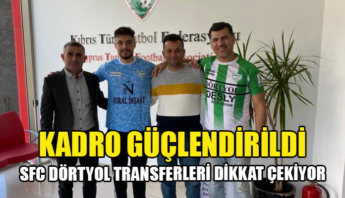 Aksa 1.ligde ilk devreyi lider tamamlayan SFC Dörtyol yaptığı üç transferle kadrosunu güçlendirdi. Aksa 1.ligide ligin zirvesinde bulunan yeşil beyazlı ekibi SFC Dörtyol’da sezon öncesinde Doğan Öztürk, sezon içerisinde Mustafa Ercan, genç oyuncu Ahmet Gürlü, Nicosia Group Kıbrıs Kupası maçında sakatlanan Ahmet Vatanseven, Sergen Alpaslan’dan doğan kadro sıkıntısı yapılan transferlerle giderilmiş oldu.