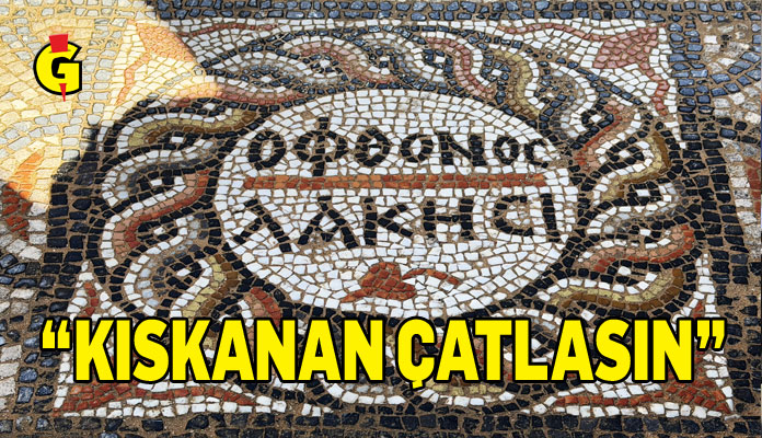 “Mozaiğin orta bölümünde ‘güle güle kullan’ ya da ‘şansla kullan’ anlamına gelen bir ifade yer alıyor. Odanın giriş kapısı bölümünde ise yuvarlak bir bordür içerisinde ikinci bir yazıt bulunuyor. Bu yazıtın biraz da mecazi bir anlamı var. Yazıttaki ilk kelime ‘kıskançlık’ ya da ‘kıskanan’, ikinci kelime ise ‘çatlayan, patlayan’ anlamına geliyor. Günümüzde de kullandığımız ‘kıskanan çatlasın’ ifadesine karşılık gelen bir anlatım söz konusu. Yaklaşık 1500 yıl önce yapılmış bir yapının giriş bölümünde böyle bir ifadeyle karşılaşmak bizler için büyük bir sürpriz oldu.”