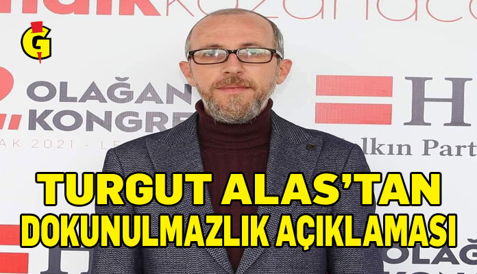 Turgut Alas, “Defalarca söyledik, kürsü dokunulmazlığı dışındaki tüm dokunulmazlıklar kaldırılsın dedik! Çünkü halkın seçtiği kişiler gerçekten memleket faydası için çalışıyorsa, dokunulmazlığa da ihtiyaçları yoktur!” ifadelerini kullandı.