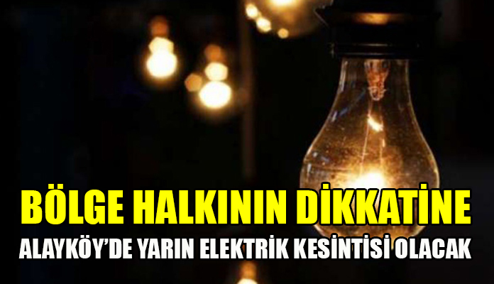 Orta gerilim elektrik şebekesinde yapılacak proje çalışması nedeniyle yarın Alayköy girişi, Alayköy Kavşağı, Alayköy Sanayi Bölgesi’nin bir bölümüne, Gönyeli Mandıralar’ın bir kısmına 6 saat elektrik verilemeyecek.