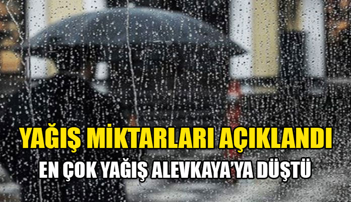 Meteoroloji Dairesi, dün en yüksek miktardaki yağışın metrekareye 4 kilogramla Alevkaya’da tespit edildiğini açıkladı.