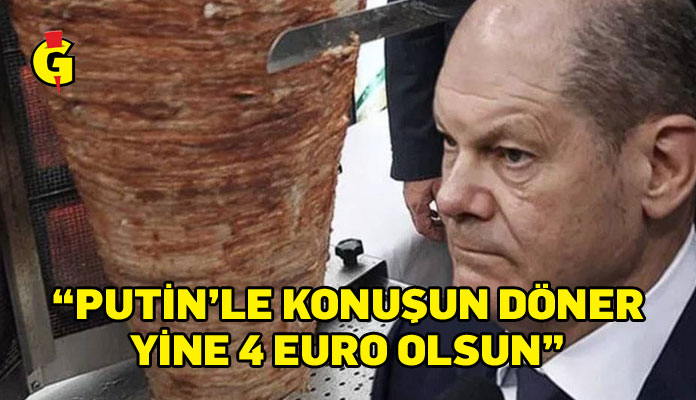 Sosyal medyada paylaşılan görüntülerde Scholz’un Münih’teki temasları esnasında bir kişi, “Sevgili Scholz döner 8 Euro oldu. Putin’le konuşun döner yine 4 Euro olsun.” diyor.