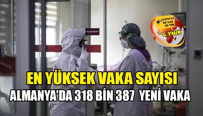 Son 24 saatte 318 bin 387 kişiye Kovid-19 tanısı koyulmasıyla salgının başından bu yana en yüksek günlük vaka sayısı kayıtlara geçti.