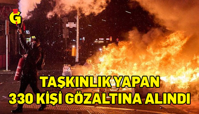 Berlin polisinden yapılan açıklamaya göre, taşkınlık yapan ve polise saldıran yaklaşık 330 kişi gözaltına alındı.