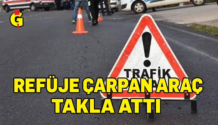 Alsancak'ta Karaoğlanoğlu Caddesinde bir araç refüje çarpıp takla attı, sürücü yaralandı.