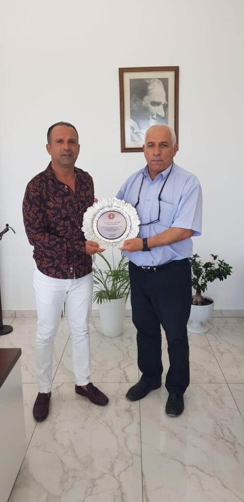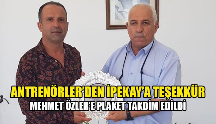 Kıbrıs Türk Futbol Antrenörler Derneği Başkanı Süleyman Göktaş, İpekay Ltd. direktörü Mehmet Özler’e gerçekleştirdiği ziyarette, teşekkür plaketini takdim etti.