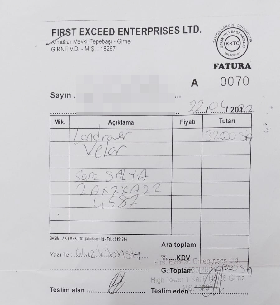 “GÜMRÜK VE POLİS ARACA EL KOYDU”… 2022 yılında Hasan Akçın ile anlaşarak, 32 bin sterlin peşin ödeme yapıp eşime Range Rover marka cip aracı satın aldık. Aracın gümrüklenebilmesi için de Mahmut Aşan tarafından faturalandırıldı. Aylarca aracın gümrüklenmesi için bekledik. Sürekli farklı bahanelerle bizi oyaladılar. Bir sorun olduğundan şüphelendiğim için Gümrük Müdürlüğü’ne giderek aracın durumunu soruşturdum. Gümrük Müdürlüğü’ndeki yetkililer aracın çalıntı olduğunu bu nedenle gümrüklenemeyeceğini söyledi. Daha sonra Gümrük görevlileri polisle birlikte gelerek araca el koydu ve araç gümrük deposuna çekildi” sözleriyle yaşadığı olayı aktardı.