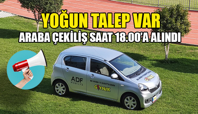 Gıynık Gazetesi tarafından yapılması planlanan araç çekilişi yoğun talep dolayısıyla akşamüzerine ertelendi. Sahibine kavuşacak aracın yeni çekiliş saati 18.00 olarak düzenlendi.