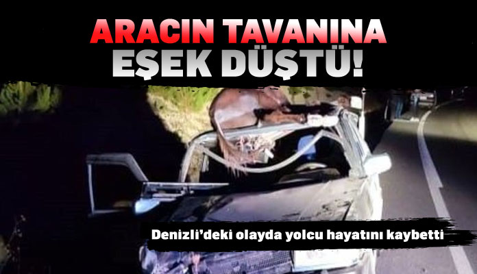 Denizli’nin Çameli ilçesinde kaza sonrası otomobilin tavanına düşen eşek, yolcu konumunda bulunan babanın ölümüne neden oldu. Otomobilin hurdaya döndüğü kazayla ilgili soruşturma başlatıldı