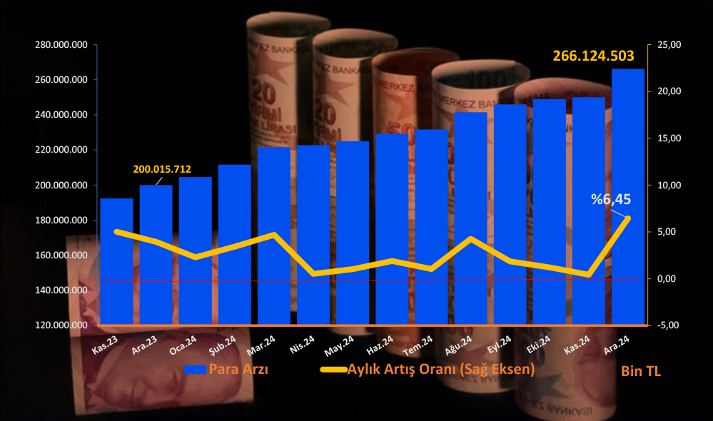 Ülke ekonomisi içinde kullanılabilecek toplam para miktarını gösteren ‘Para Arzı’ %33 oranında arttı