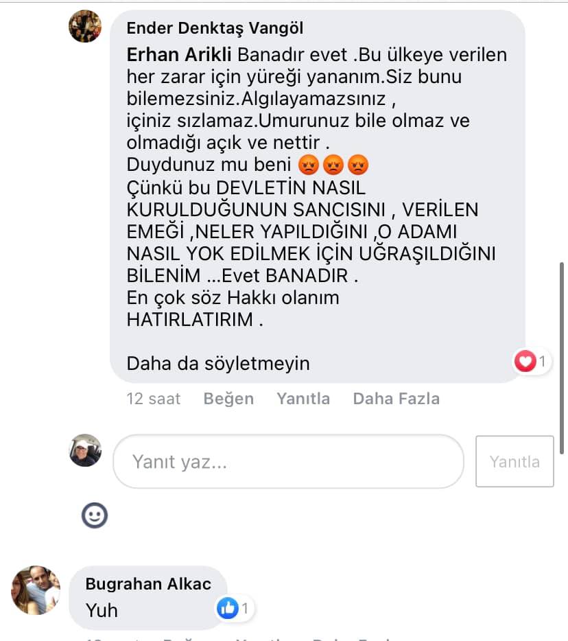 Kurucu Cumhurbaşkanı Rauf Raif Denktaş’ın kızı Ender Denktaş Vangöl’ün kendisinin bir haber sitesinde yayınlanan haberinin altına yaptığı esprili yoruma “sana ne?” şeklinde yanıt verdi.