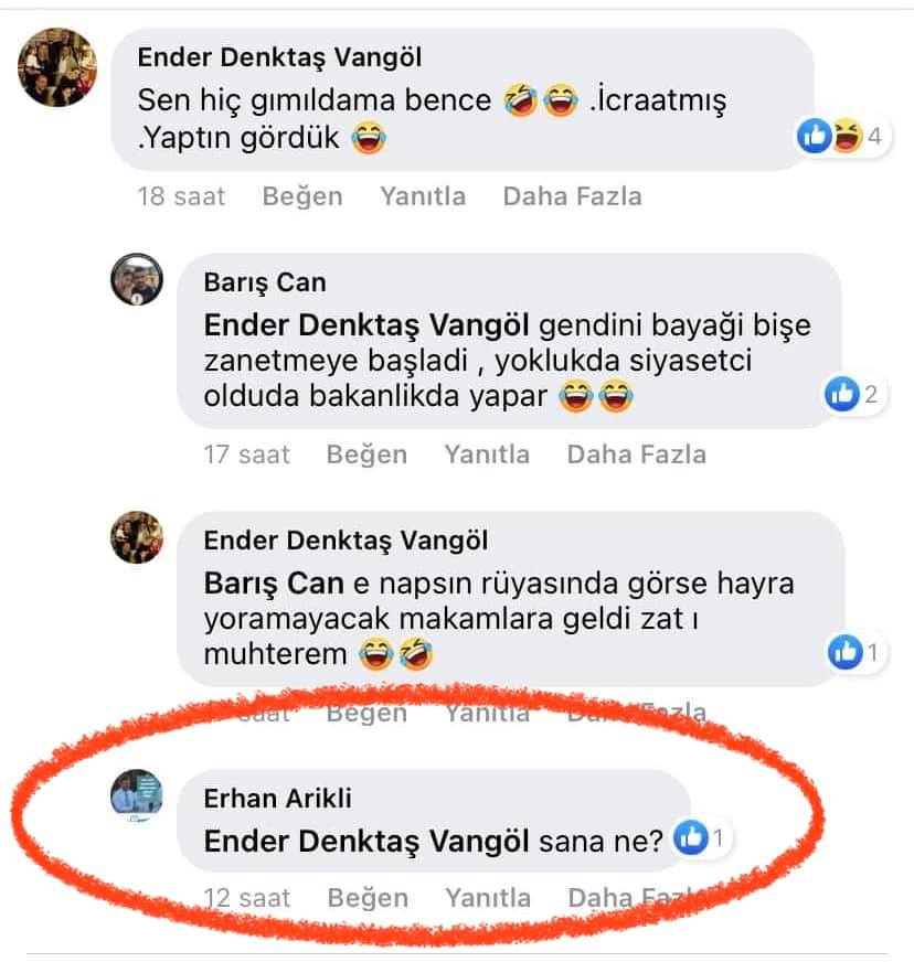 Kurucu Cumhurbaşkanı Rauf Raif Denktaş’ın kızı Ender Denktaş Vangöl’ün kendisinin bir haber sitesinde yayınlanan haberinin altına yaptığı esprili yoruma “sana ne?” şeklinde yanıt verdi.