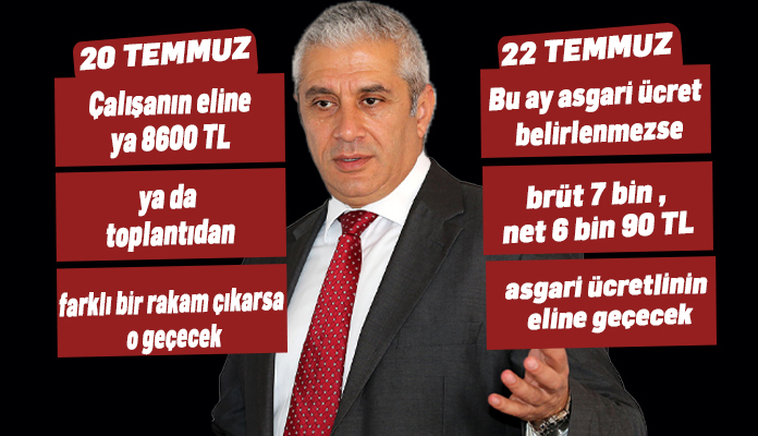 Ertelenen toplantı sonrası basına açıklamalarda bulunan Çalışma ve Sosyal Güvenlik Bakanı Hasan Taçoy; “Bu ay asgari ücretin belirlenmezse brüt 7 bin , net 6 bin 90 TL asgari ücretlinin eline geçecek” dedi.