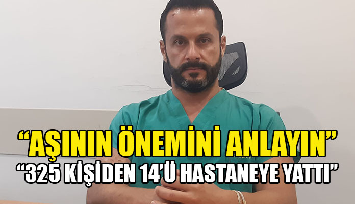 Acil Durum Hastanesi Başhekimi Dr. Uçaner, “Özetlemek gerekirse 325 kişi aşılı, hastaneye başvuruyorlar ve içlerinden sadece hastaneye yatan sayısı 14” dedi.
