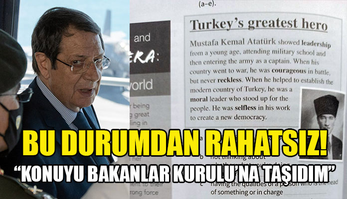 Anastasiadis’in konuyla ilgili dünkü açıklamasında “bu konunun 21’inci yüzyılda belki de başka bir şekilde yönetilebileceğini” söylediğini kaydeden gazete, Eğitim Bakanlığının ise konuyla ilgili tutumunu savunduğunu ve bu yıl ilk kez kullanılacak kitapta “Atatürk’ten övgüyle bahseden kabul edilemez ve yersiz ifadeler bulunduğunu” ileri sürdüğünü aktardı.