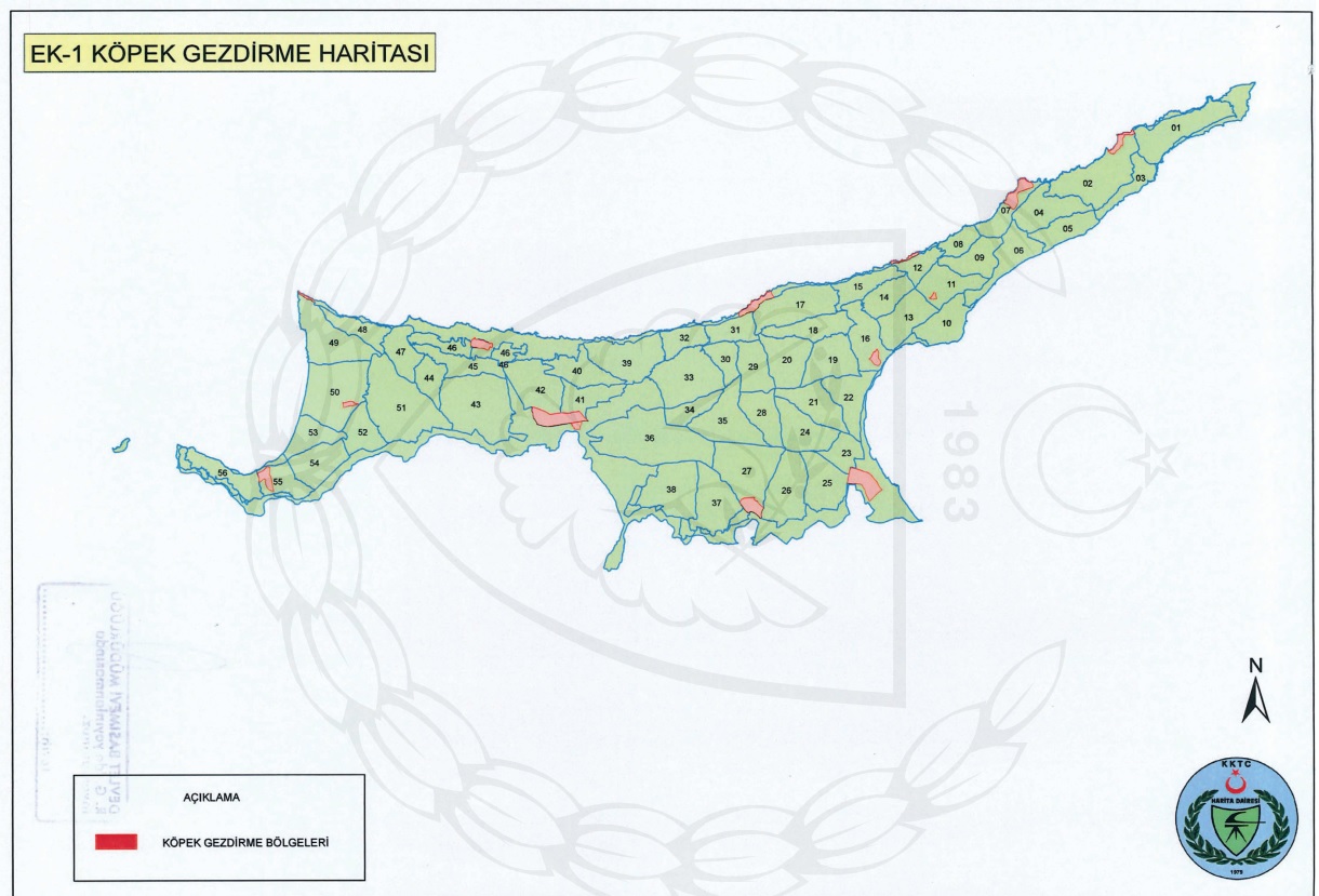 2 nolu av bölgesi: Başlangıç noktası 1 nolu av bölgesi içerisindeki sürekli av koruma sınırındaki Oasis Otelin kavşağı, kavşakta asfalt yolu Dipkarpaz Köyü istikametinde 580m. ilerleyerek dört yol ağzını bulunuz, oradan batı istikametine dönen toprak yolu takiben 1370m. gittikten sonra üç yol ağzına, üç yol ağzından toprak yolu batı istikametine 580m. Gittikten sonra üç yol ağzına, oradan yine toprak yolun güney istikametine 200m. ilerleyerek toprak yol kavşağına, oradan yine toprak yolu batı yol istikametinde 300m. ilerleyerek üç yol ağzına geliriz, oradan yine toprak yolu batı yönünde 700m. ilerleyerek Erenköy Dipkarpaz asfalt yolunu buluruz, asfalt yoldan Erenköy istikametine 1400m. ilerleyerek kuzey yönüne dönen toprak yol kavşağı buluruz. Toprak yol kavşağından deniz kıyısına kuzeye 600m. İlerleyerek deniz kıyısını buluruz. Tanımı yapılan bölge ile deniz kıyısı arasında kalan bölge köpek gezdirme bölgesi olarak ilan edilmiştir.