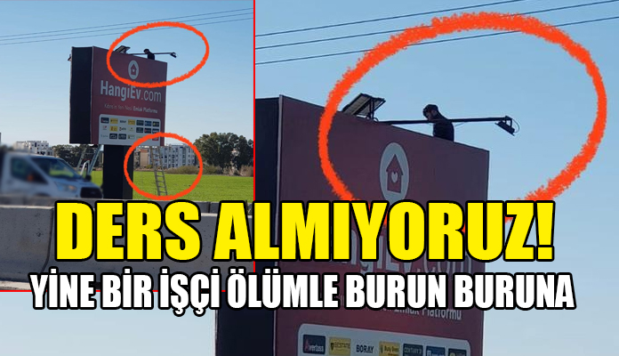 30 Aralık 2021 tarihinde Lefkoşa-Girne anayolu üzerinde bir gencin hayatını kaybetmesinin ardından bugün aynı güzergah üzerinde ve yüksek gerilim hattına daha yakın bir reklam panosu üzerinde yeniden bir işçi ölümle burun buruna çalışıyor.