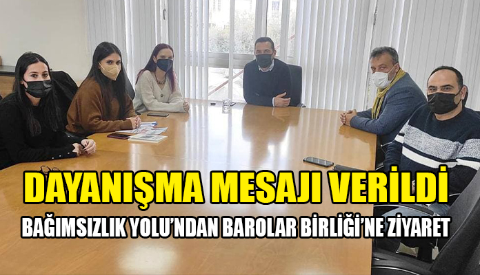 Görüşmede, yargı bağımsızlığına gelebilecek her türlü müdahaleye karşı Bağımsızlık Yolu’nun Kıbrıs Türk Barolar Birliği ile dayanışma halinde hareket edeceği vurgulandı