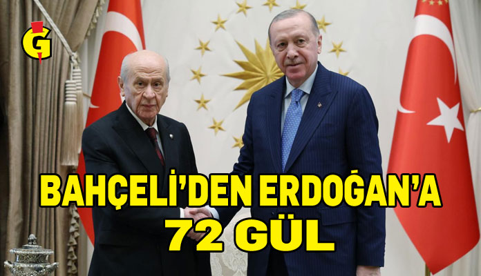MHP’nin NSosyal hesabından yapılan paylaşımda, Bahçeli’nin, Cumhurbaşkanı Erdoğan’a doğum günü dolayısıyla 72 gülden oluşan çiçek ile tablo hediye ettiği belirtildi.