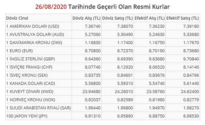 26 Ağustos 2020 sabahında spot piyasada,
