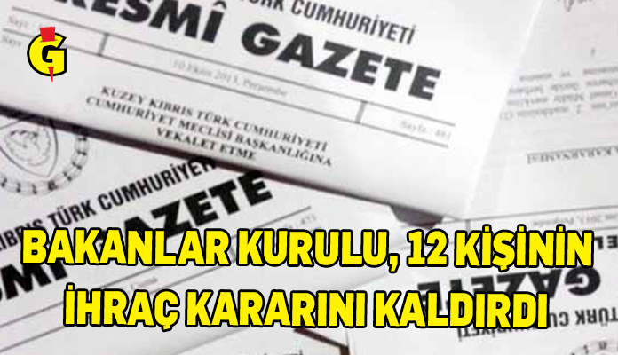 Bakanlar Kurulu, 12 kişinin KKTC’de aile birliklerinin bozulmaması amacıyla ihraç emirlerinin ve giriş yasaklarının iptal edilmesine karar verdi. Karar, Resmi Gazete’de yayımlandı.