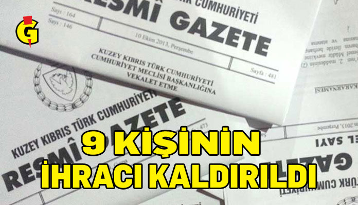 Bakanlar Kurulu, 9 kişinin KKTC’de aile birliklerinin bozulmaması amacıyla ihraç emirlerinin ve giriş yasaklarının iptal edilmesine karar verdi. Karar, Resmi Gazete’de yayımlandı.