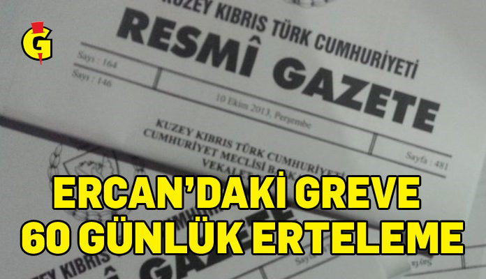 Bakanlar Kurulu, Ercan Havalimanı Hava Trafik Şube Amirliği’nde bugün başlatılan grevin 60 gün ertelenmesine karar verdi.