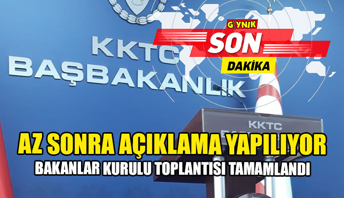 Başbakanlık Basın Birimi’nden yapılan açıklamaya göre Bakanlar Kurulu toplantısının tamamlandığı ve kısa süre içerisinde basın açıklaması yapılacağı duyuruldu.