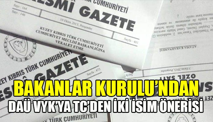 Bakanlar Kurulu’ndan DAÜ VYK’ya Türkiye’den iki isim önerisi