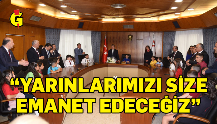 Başbakanlık koltuğuna oturup, çocukların Bakanlar Kurulu toplantısına başkanlık eden Karakol İlkokulu öğrencisi Çınar Ege Özzaim ise Atatürk’ün çocuklara armağan ettiği 23 Nisan Ulusal Egemenlik ve Çocuk Bayramı’nın 105’inci yıldönümü olduğunu kaydetti.