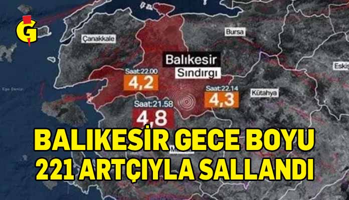 Balıkesir'in Sındırgı ilçesinde 4,8 büyüklüğünde deprem meydana geldi. Sındırgı, gece boyu en büyüğü 4,2'lik olmak üzere irili ufaklı 221 ayrı depremle sallandı.