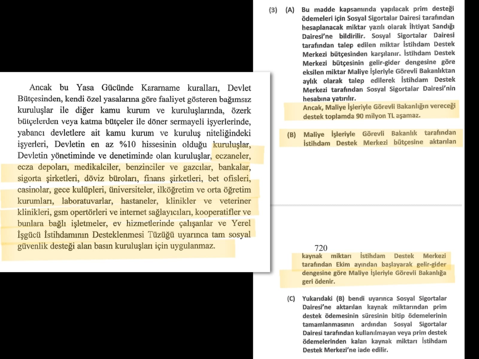 Fotoğrafın sağında sarı çizgili alanda da gördüğünüz üzere bu destek için aslında Maliye Bakanlığı 90 Milyon TL’yi aşmayacak bir şekilde fona avans vermekte ve Ekim ayından itibaren de İhtiyat Sandığı’ndan bu parayı geri alacağı ifade edilmektedir.
