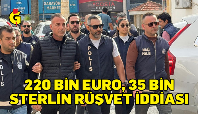 Polis, zanlının 2022-2024 tarihleri arasında Lefkoşa’da devlet dairelerinde işlemlerin yapılması için bazı şahıslardan 220 bin Euro, 35 bin sterlin rüşvet aldığına dair bilgi edindiklerini söyledi. Polis, zanlının yine aynı tarihler arasında bir devlet arazisinin kiralanmasına onay vermesi için devlet memuruna 200 bin sterlin rüşvet teklif ettiğini belirtti. Polis, devlet dairesindeki bir işlemin yapılması için 200 bin sterlin rüşvet istediğini açıkladı.