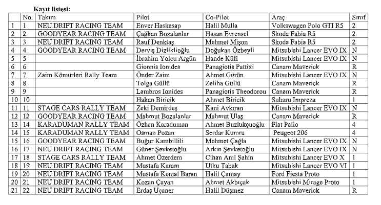 Fabia R5 ile, Rauf Denktaş-Mehmet Mişon ikilisinin Skoda Fabia R5 ile start alacağı yarışta toplamda 21 ekip