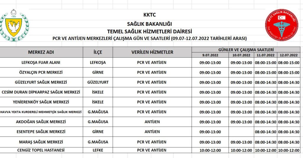 Sağlık Bakanlığı’ndan yapılan açıklamada Lefkoşa, Girne, Gazimağusa, Güzelyurt, İskele ve Lefke’de 10 merkezin bayram boyunca hizmet vermeye devam edeceği bildirildi.