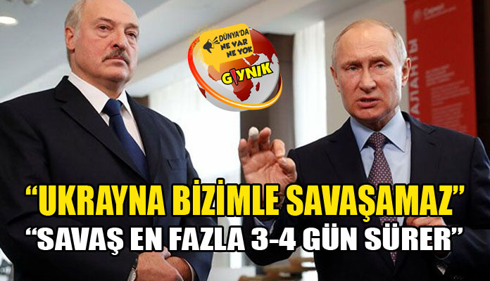 Belarus Devlet Başkanı Lukaşenko, olası bir savaşta kimsenin kendilerine karşı duramayacağını belirterek, “Ukrayna’nın bizimle asla savaşmayacağı çok net. Bu savaş en fazla üç veya dört gün sürer. Bize karşı savaşacak kimse olmaz” dedi.