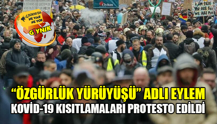 Belçika’nın başkenti Brüksel’de binlerce kişi Koronavirüs kısıtlamalarını protesto etmek amacıyla 3’üncüsü düzenlenen “Özgürlük Yürüyüşü” adlı eyleme katıldı.