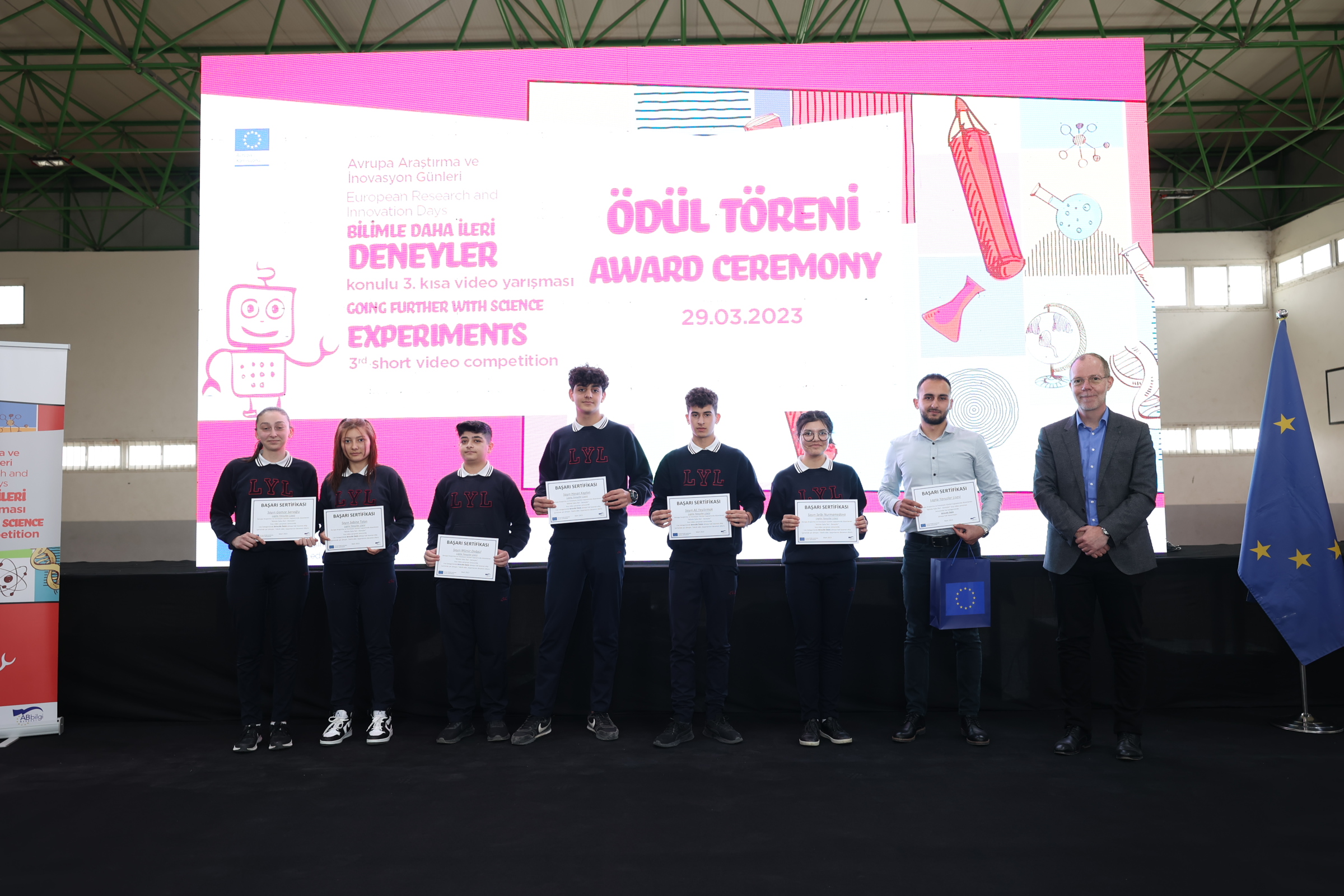 Avrupa Komisyonu’nun desteğiyle, ilkokul, ortaokul, lise ve meslek lisesi öğrencilerine yönelik “deneyler” temasıyla düzenlenen “Bilimle Daha İleri” konulu kısa film yarışmasında dereceye giren öğrencilere ödülleri verildi.