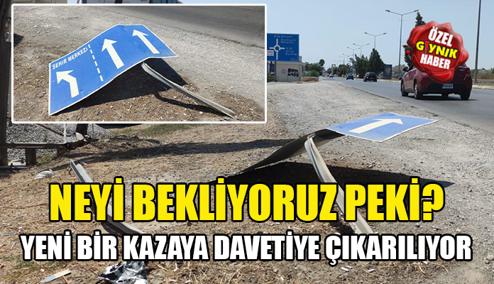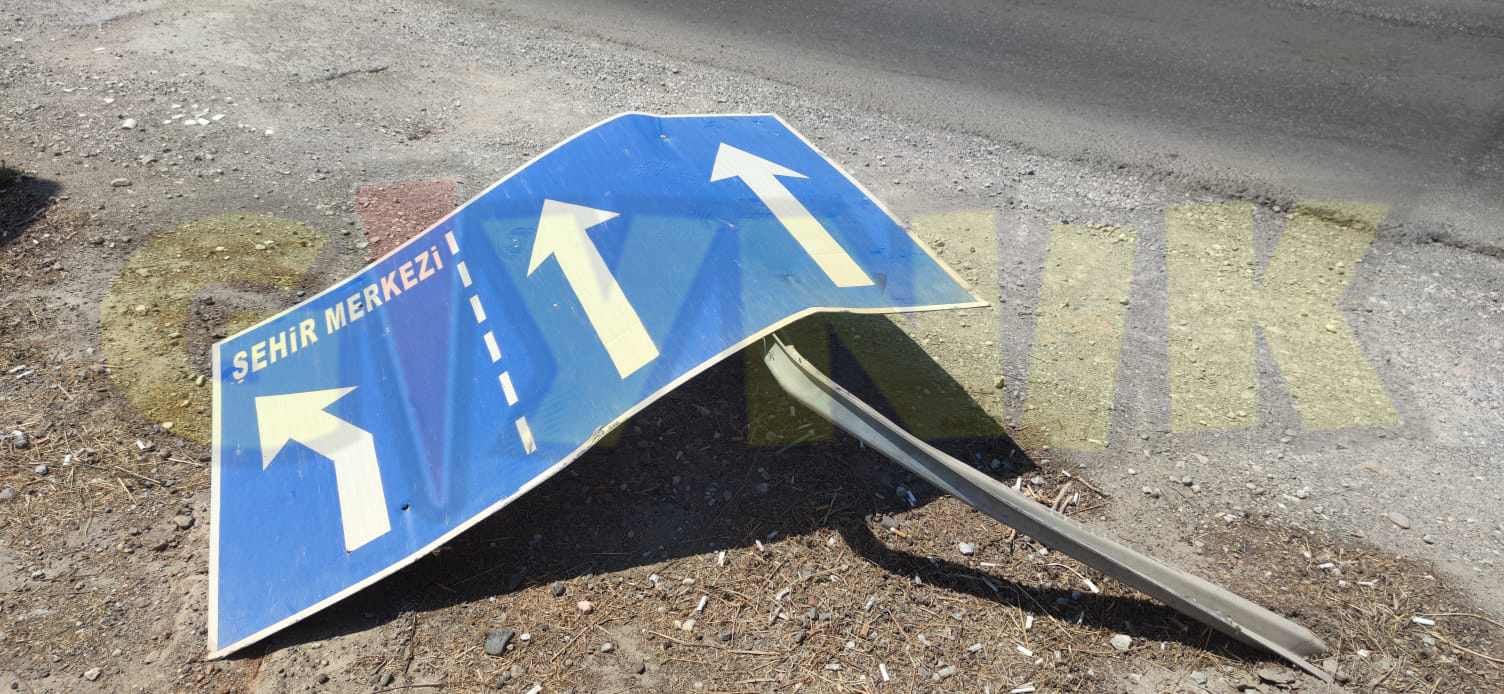 Zarar görmüş ve yerinden sökülmüş yönlendirme tabelasının orada bulunması başka bir kazaya davetiye çıkarırken, yaya ve bisikletlilere de tehlike teşkil ediyor.