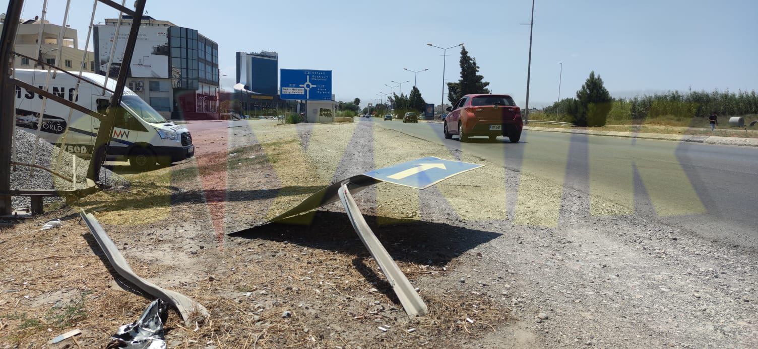 Lefkoşa Fuar Alanı’ndan Gönyeli Çemberi istikametine gidiş şeridinde geçtiğimiz günlerde meydana gelen kaza sonucu yolun solundaki şirket tabelası ve Kara Yolları Dairesi’nin yerleştirdiği yönlendirme tabelası zarar görmüştü.