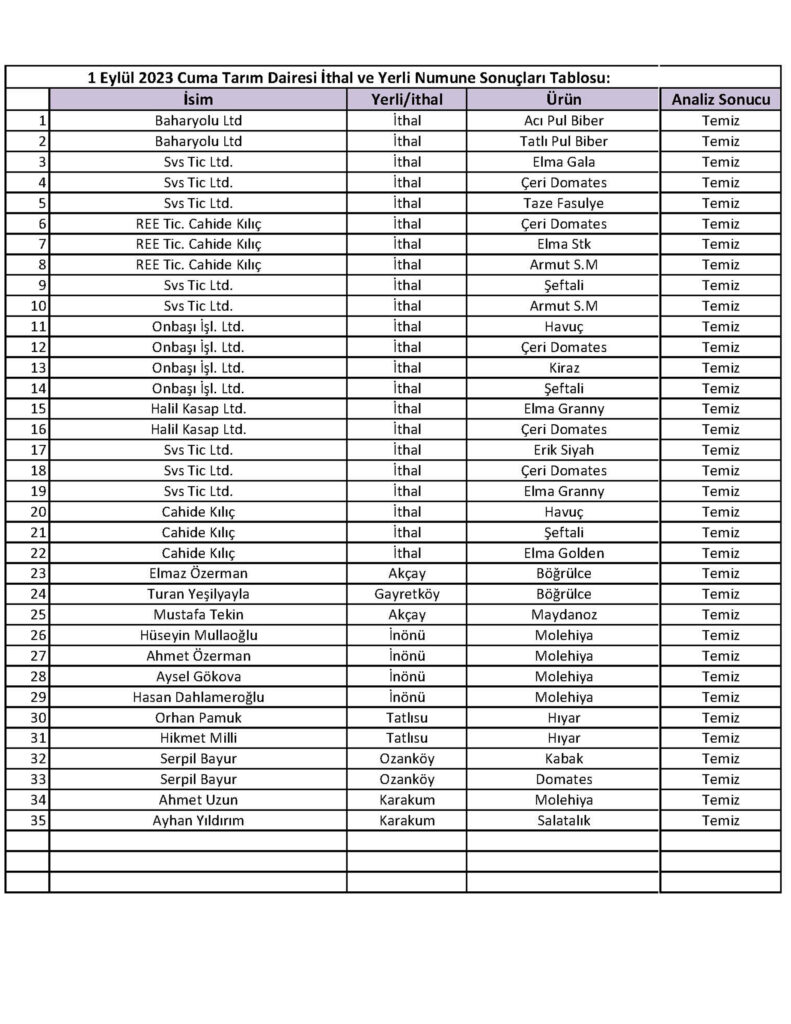 Tarım Dairesinden verilen bilgiye göre 25-31 Ağustos arası yerli bitkisel ürünlerden alınan 13 ve ihtal bitkisel ürünlerden alınan 22 numunede yapılan analizde, limit üstü bitki koruma ürünü saptanmadı.
