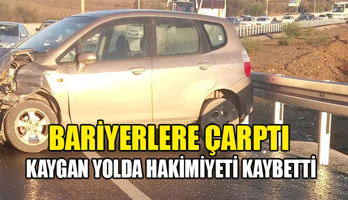 Yolun kayganlığı direksiyon hakimiyetini kaybeden araç yolun solunda bulunan bariyerlere çarptı. Yol üzerinde uzun kuyruklar oluştu
