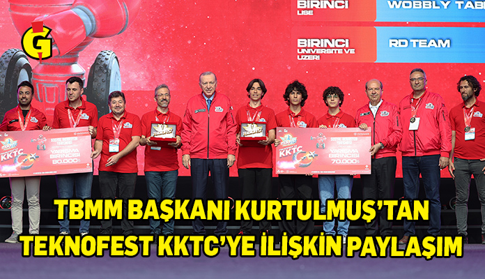 Türkiye Büyük Millet Meclisi (TBMM) Başkanı Numan Kurtulmuş, TEKNOFEST KKTC'ye ilişkin, "Bu anlamlı gün, gelecek irademizin de güçlü bir tezahürüdür. Kıbrıslı gençlerimizin milli teknolojiyle buluşması, ortak geleceğimize duyulan inancın açık bir göstergesidir." dedi.