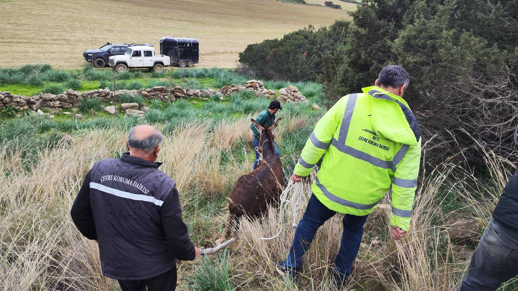 Karpaz’da bir eşek avcı veya avcılar tarafından acımasızca vuruldu. Duyarlı başka avcılar tarafından yaralı halde bulunan eşek için 1190 Yaban Hayat Destek Hattından yardım istendi. Olay yerine ulaşan Çevre Koruma Dairesi ve Taşkent Doğa Parkı ekipleri yaralı eşek için seferber oldu.