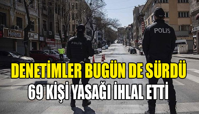 Sokağa çıkma yasağı kapsamında bugün (16 Mayıs 2021 Pazar) ülke genelinde gerçekleştirilen denetimler sonucu toplam 69 kişinin Sokağa Çıkma Yasağını ihlal ettiği, bir iş yerinin ise açık bulunduğu tespit edildi. Bahse konu şahıslar hakkında yasal işlem başlatılmıştır.