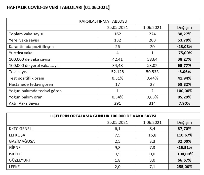 07.06.2021 tarihinden itibaren haftanın tüm günleri için “saat:00.00 ile 05.00 saatleri arasında temel ihtiyaçların karşılanması haricinde sokağa çıkma yasağı alınması” şeklinde değiştirilmesi önerilmektedir.