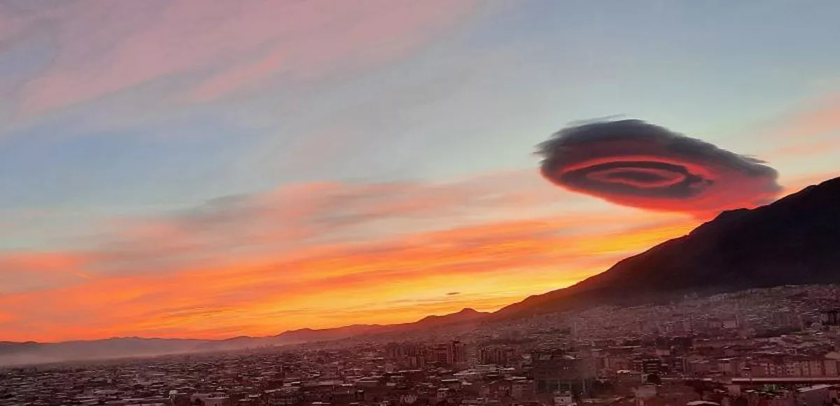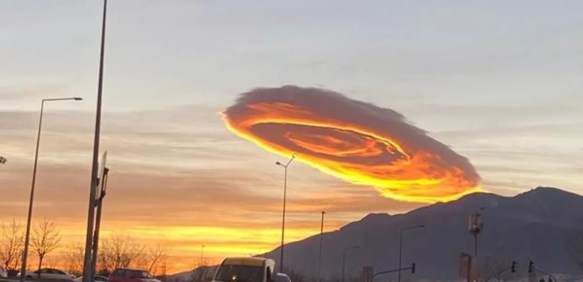 Bursa'da Güneş'in yeryüzünü aydınlattığı ilk dakikalarda gökyüzüne bakanlar UFO görünümlü bulutları görünce büyük bir şaşkınlık yaşadı. Bulutların bu şekli almasına 'Mercek bulut' adı verildiği öğrenilirken engebeli arazide rüzgar dalgalanmaları sonucu ortaya çıktığı belirtildi.
