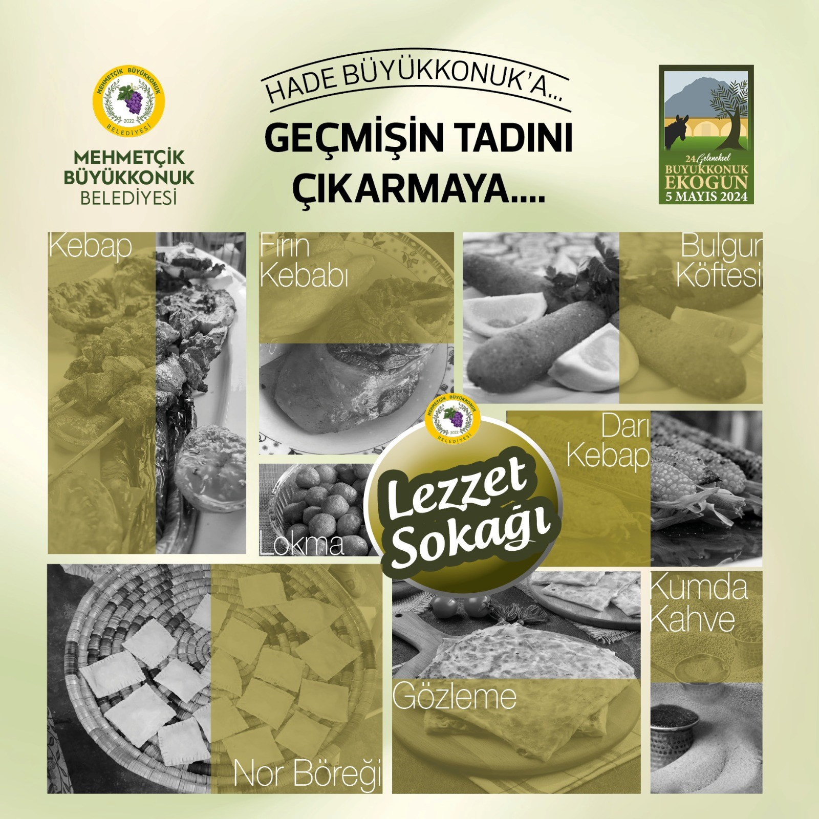Oluşturulan Lezzet Sokağı’nda; saç gatmeri, saç böreği, Kıbrıs hellim böreği, bulgur köftesi, lokma, şamişi, herse yemekleri, fırın kebabı, şeftali kebabı ve şiş kebabı Eko Gün’e gelen ziyaretçilerin damaklarında geçmişe yolculuk imkanı sunacak.