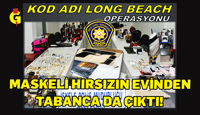 Yürütülen ileri soruşturma ve gerçekleştirilen “Kod-Adı Long Beach Operasyonu” kapsamında, H.A.’nın tespit edildiği bölgede ve akabinde kalmakta olduğu ikametgahta yapılan aramalarda, bahse konu şahsın 09.05.2023-03.05.2025 tarihleri arasında İskele bölgesinde açıp girdiği birçok ikametgah içerisinden çalmış olduğu; bir adet 7.65 mm çapında tabanca, tabancaya ait iki adet şarjör ile toplam 32 adet 7.65 mm çapında canlı mermi, yüklü miktarda döviz ve TL cinsi para, muhtelif ziynet eşyaları ile değişik modellerde birçok güneş gözlükleri, saatler, alkollü içkiler, elektronik cihazlar ve ev eşyaları bulunarak emare olarak alındı.